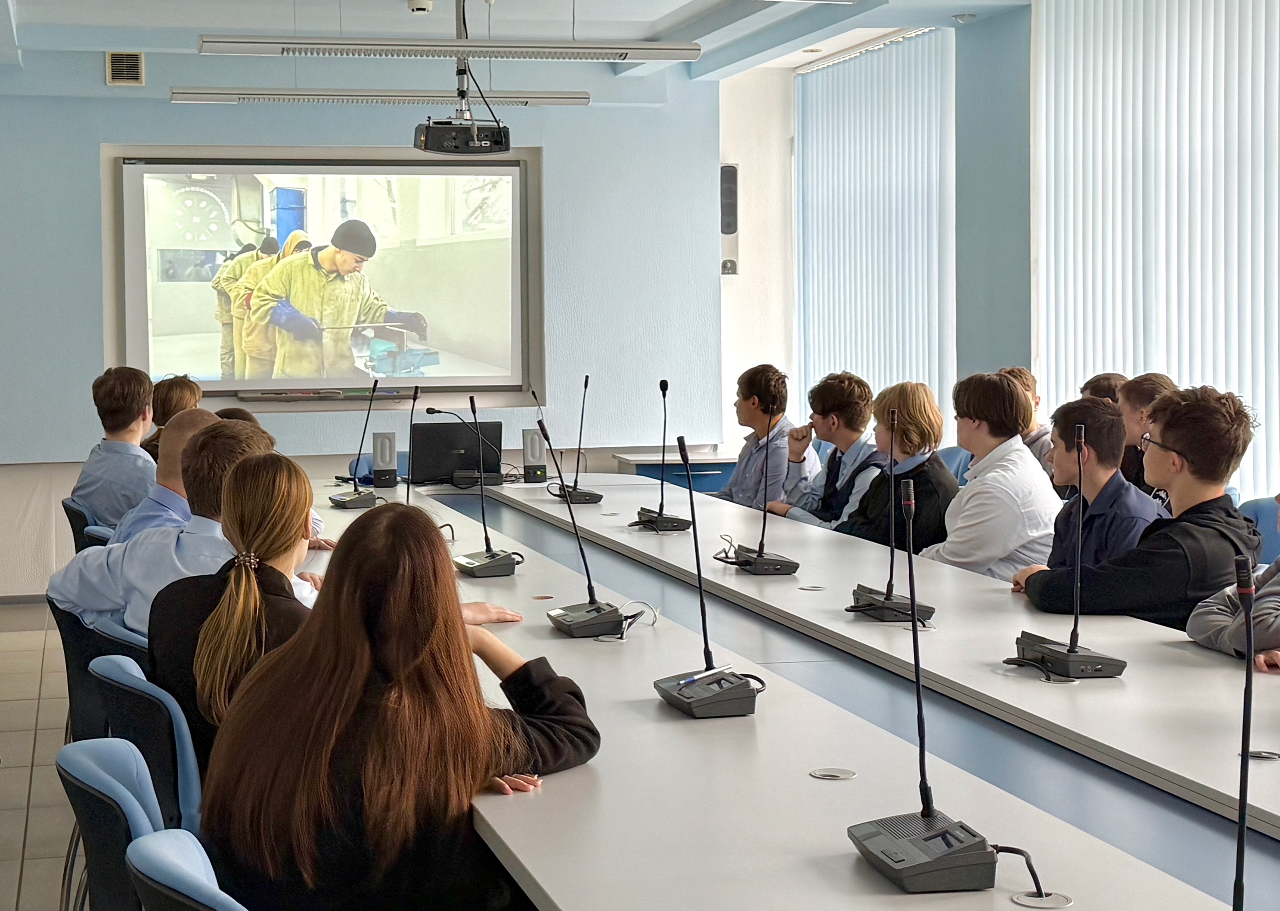 Школьникам также был продемонстрирован видеоролик, посвященный рабочим профессиям. Ребята получили представление о разнообразии специальностей и профессий и о перспективах трудоустройства для выпускников школ.