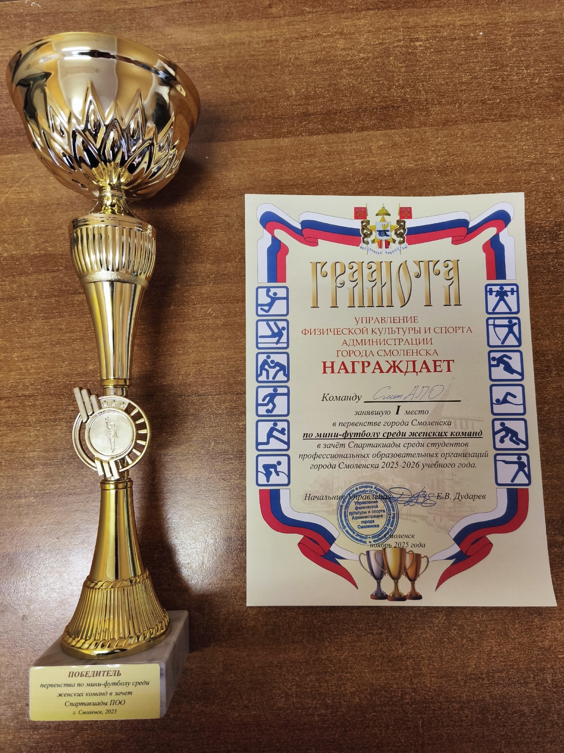 Команда СмолАПО взяла первое место по мини-футболу среди женских команд в зачёте спартакиады средних специальных учебных заведений.