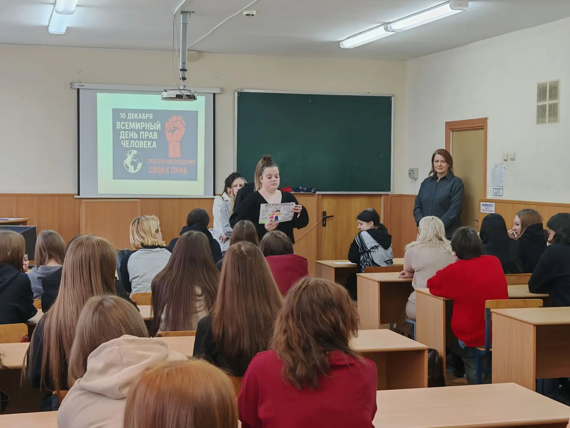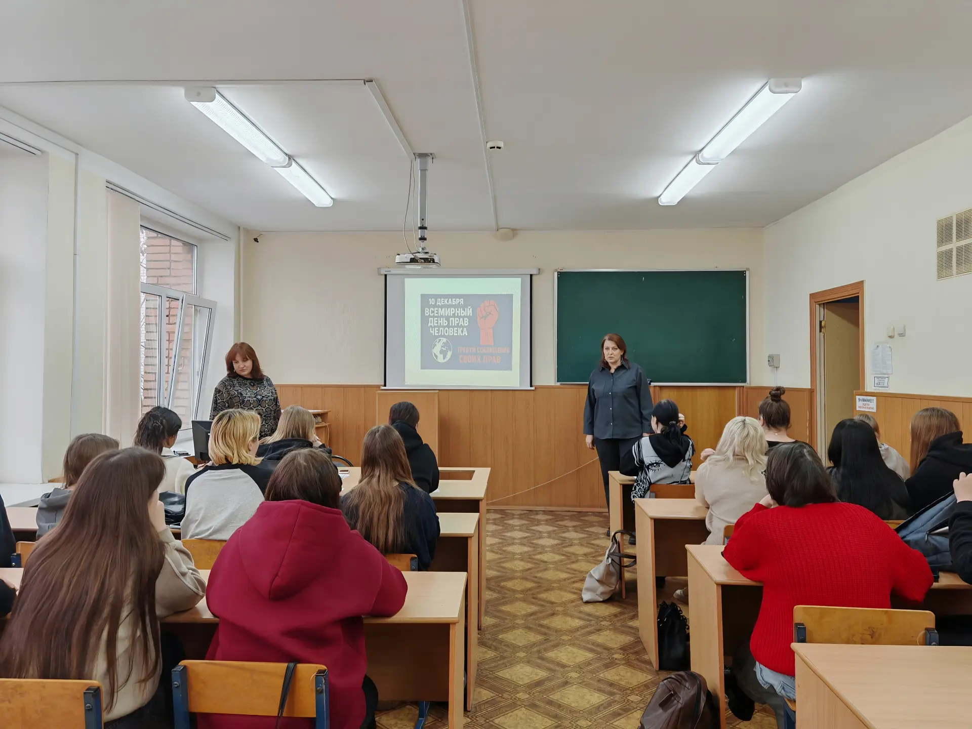 10 декабря в рамках Международного дня прав человека Кафедра социальных специальностей подготовила и провела мероприятие. В ходе мероприятия студентам первого курса 511-ю, 511-с рассказали о правах человека. Студенты узнали интересные факты посвященные правам человека и дню Конституции РФ. Студенты группы 412-с рассказали о правах ребенка.